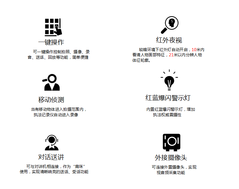 k8凯发DSJ-200F 执法仪(法院/政府/城管)拍摄像素高达5000万,广角镜头137,拍摄画面精细而全面,大容量电池支持陆续在工作12小时不断电